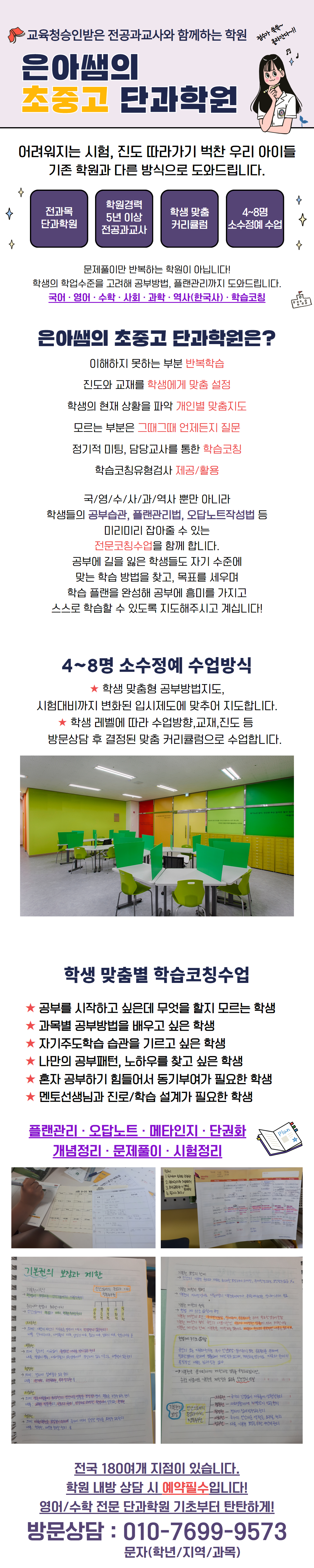 부천 상동 고등 영수학원 중등 국어학원 초등 소수정예 1대1 학습코칭을 통해 영어와 수학 학업 성취도를 높이고 학업 목표를 달성하기 바랍니다.